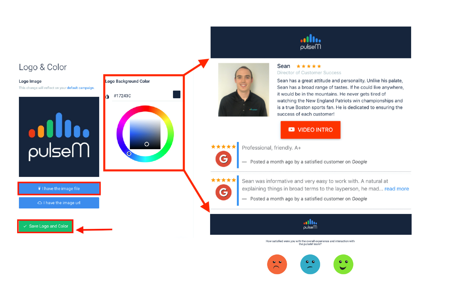 The 'Logo & Color' tile is where you can fine tune the look of your Bios and pulseChecks to look like they're coming from your company. You have full customization abilities over the Logo and Color that will appear on the top of your messages to customers.