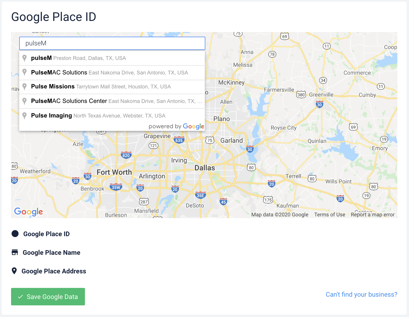 *If you are unable to locate your Google Place ID, please reach out to pulseM support at support@pulsem.me or to your CSM as they will be able to help locate this.