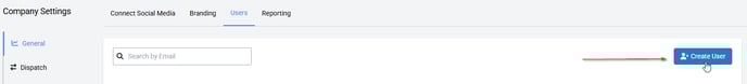 To add a 'User' account, locate and click the blue 'Create User' button. Enter in the desired email and password for the dispatcher account.