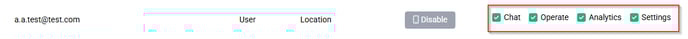After creating a user for your pulseM account, you may configure their access for 'Dispatching' or 'Chat' by enabling or disabling the check mark to the right of their email address.