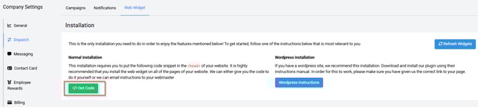 To install the Review Widget code on your website, you will need to install the pulseM source code into every page desired. To begin, click the green Get Code button located under the Normal Installation section.