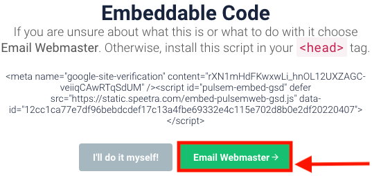 Then, send the instructions for installing the Review Widget to your webmaster's email. Click on the green Email Webmaster button and enter the email address.